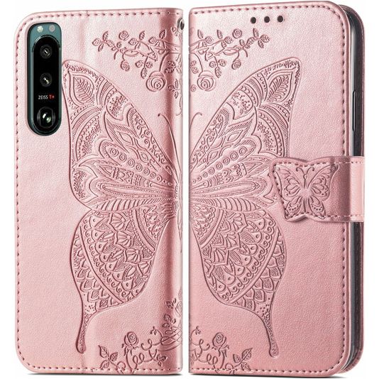 Mobigear Butterfly Sony Xperia 5 IV Hoesje Bookcase Portemonnee - Roségoud