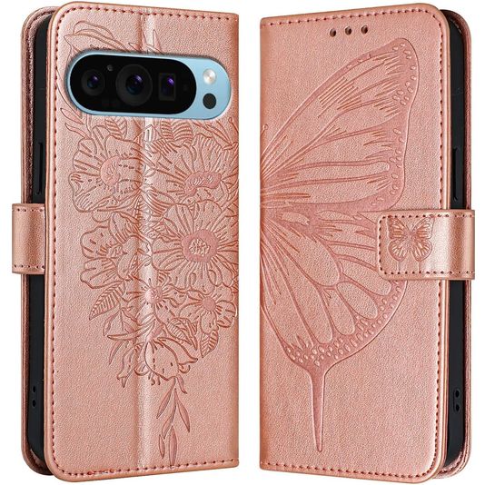 Mobigear Butterfly Google Pixel 9 Pro XL Hoesje Bookcase Portemonnee - Roségoud