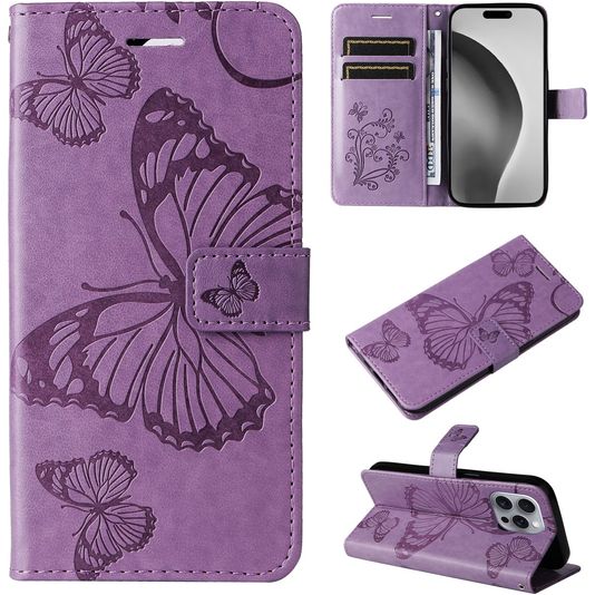 Mobigear Butterfly iPhone 16 Pro Max Hoesje Bookcase Portemonnee - Paars