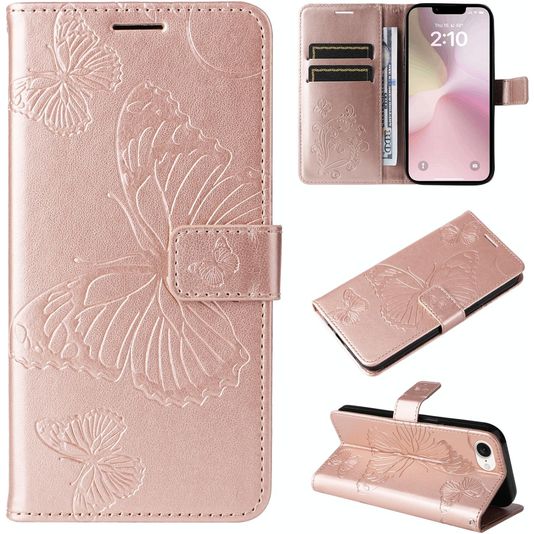 Mobigear Butterfly iPhone 17e Hoesje Bookcase Portemonnee - Roségoud