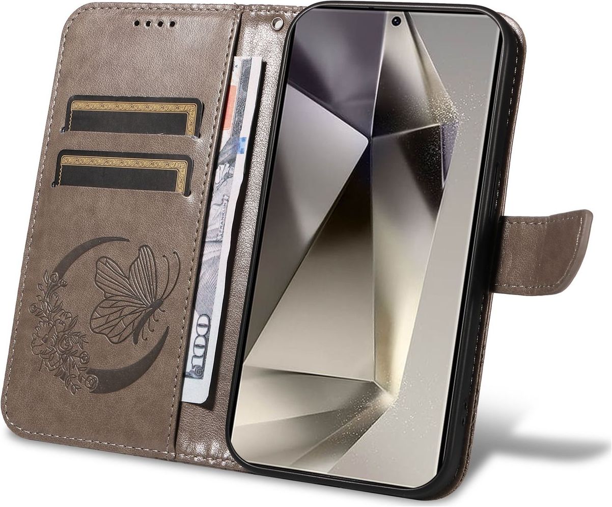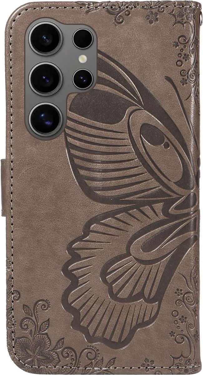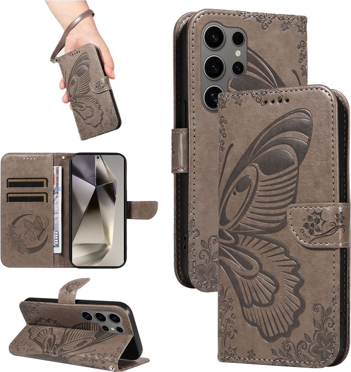 Mobigear Butterfly Samsung Galaxy S25 Ultra Hoesje Bookcase Portemonnee - Grijs