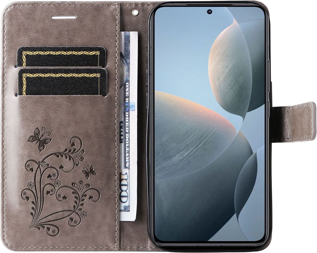Mobigear Butterfly Xiaomi 14T Hoesje Bookcase Portemonnee - Grijs