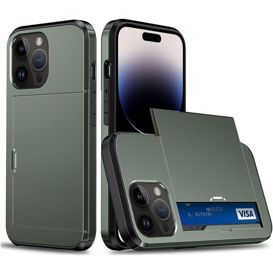Mobigear Card iPhone 15 Pro Max Hoesje Hardcase Backcover Shockproof met Pasjeshouder - Legergroen