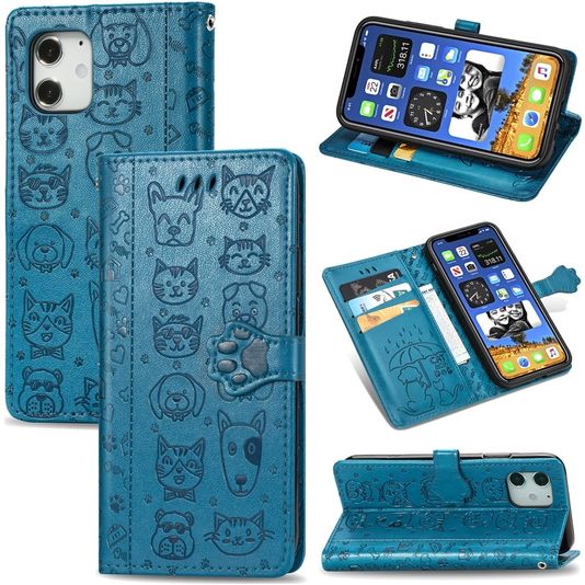 Mobigear Cat and Dog iPhone 12 Pro Hoesje Bookcase Portemonnee - Blauw