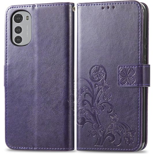 Wil je een Motorola Moto E32 hoesje met volledige bescherming rondom en een stijlvol en praktisch design? Dan is dit Mobigear Clover bookcase hoesje voor Motorola Moto E32 de perfecte keuze. Het booktype hoesje is gemaakt van hoogwaardig kunstleer en uitgevoerd in de kleur paars. Met een boek hoesje is je Motorola Moto E32 rondom goed beschermd, inclusief het kwetsbare scherm. De voorklep opent opzij als een boek en sluit stevig met een magnetische sluiting. Er is ruimte voor 3 pasjes zodat je altijd je bankpas of ID bij de hand hebt.