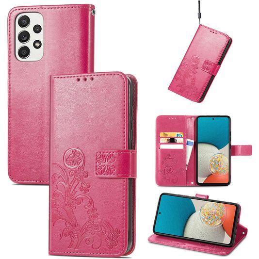 Wil je een Samsung Galaxy A73 hoesje met volledige bescherming rondom en een stijlvol en praktisch design? Dan is dit Mobigear Clover bookcase hoesje voor Samsung Galaxy A73 de perfecte keuze. Het booktype hoesje is gemaakt van hoogwaardig kunstleer en uitgevoerd in de kleur magenta. Met een boek hoesje is je Samsung Galaxy A73 rondom goed beschermd, inclusief het kwetsbare scherm. De voorklep opent opzij als een boek en sluit stevig met een magnetische sluiting. Er is ruimte voor 3 pasjes zodat je altijd je bankpas of ID bij de hand hebt.