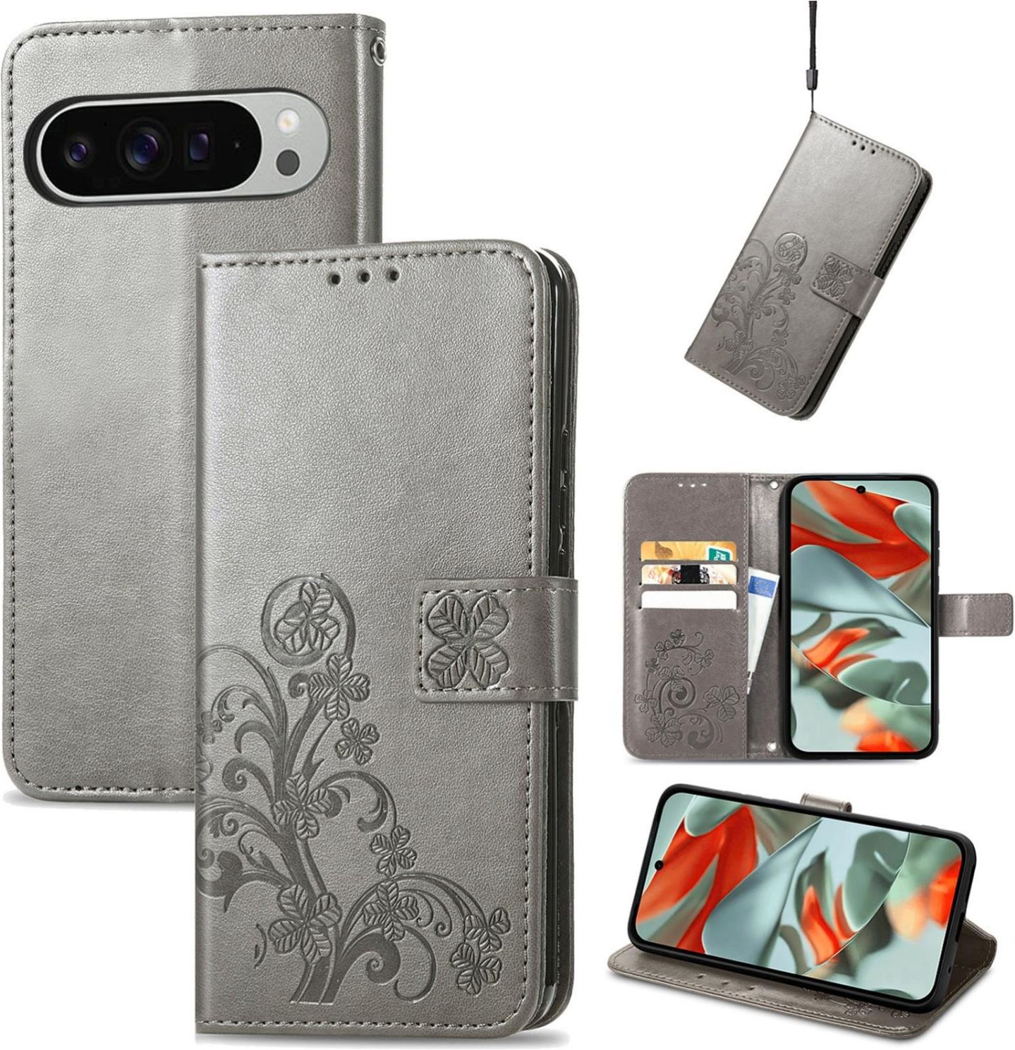 Mobigear Clover Google Pixel 9 Pro XL Hoesje Bookcase Portemonnee - Grijs