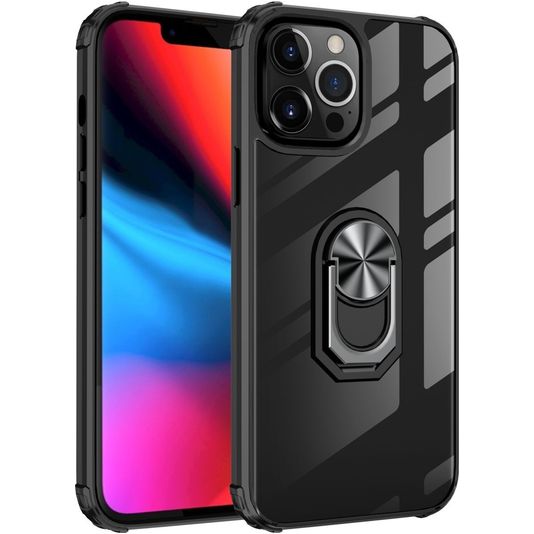 Mobigear Crystal Ring iPhone 14 Pro Max Hoesje Hardcase Backcover met Ringhouder - Transparant / Zwart
