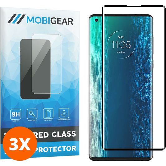 Mobigear Curved Motorola Edge (2020) Glazen Screenprotector - Case Friendly - Zwart (3-Pack)