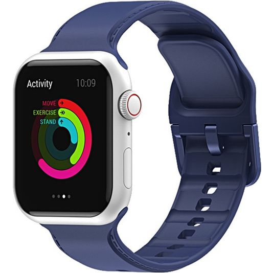 Mobigear Dashed Siliconen Apple Watch Bandje Gespsluiting - 42/41/40/38 mm - Donkerblauw