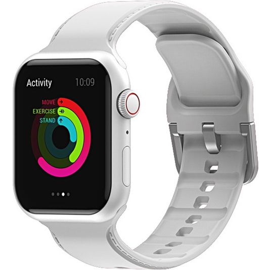 Mobigear Dashed Siliconen Apple Watch Bandje Gespsluiting - 42/41/40/38 mm - Wit