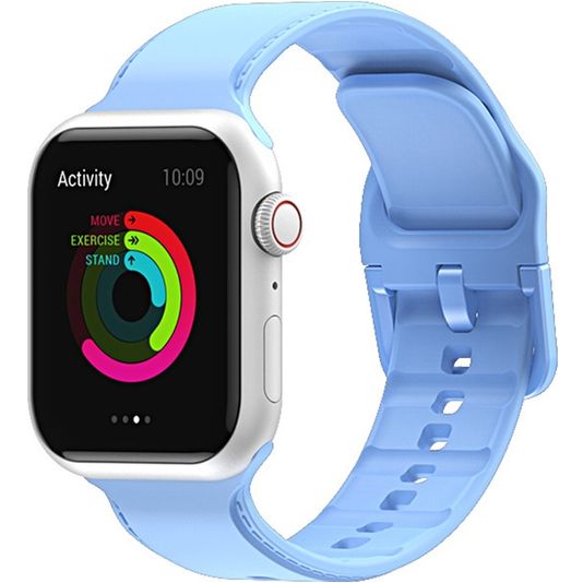 Mobigear Dashed Siliconen Apple Watch Bandje Gespsluiting - 49/46/45/44 mm - Babyblauw