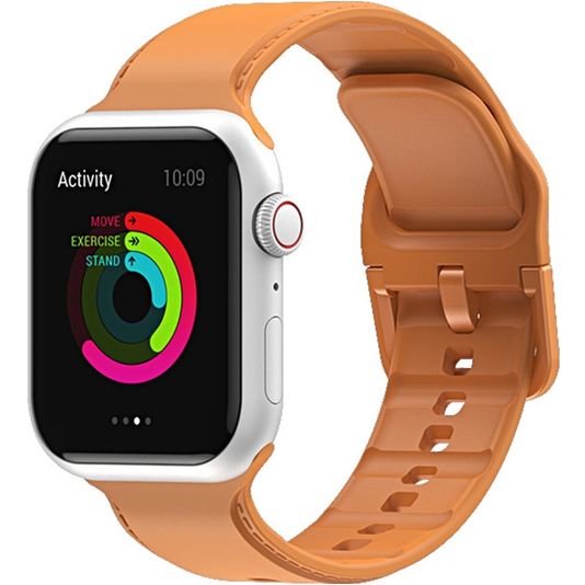 Mobigear Dashed Siliconen Apple Watch Bandje Gespsluiting - 49/46/45/44 mm - Cognac