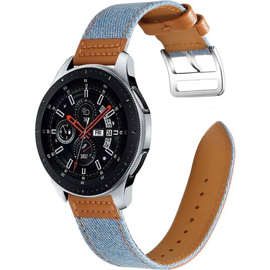 Mobigear Denim Leren Smartwatch Bandje Gespsluiting - Universeel 22 mm connector - Bruin / Blauw