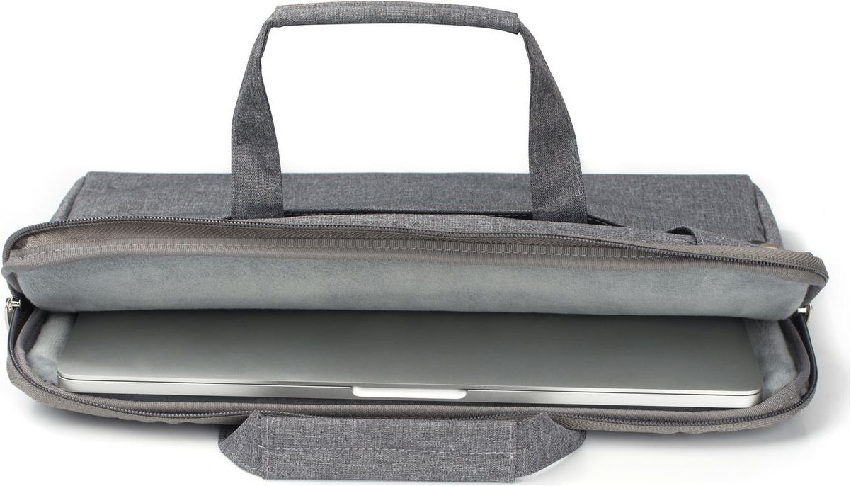 Deze universele schoudertas is geschikt voor gebruik met verschillende laptops.