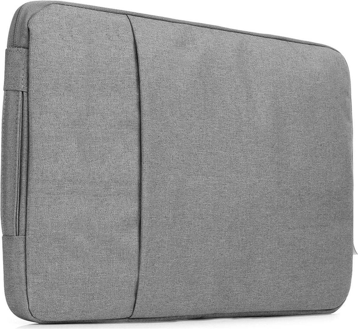 De laptop sleeve is gemaakt van polyester en uitgevoerd in de kleur grijs. Met de ritssluiting sluit je de tas veilig af.