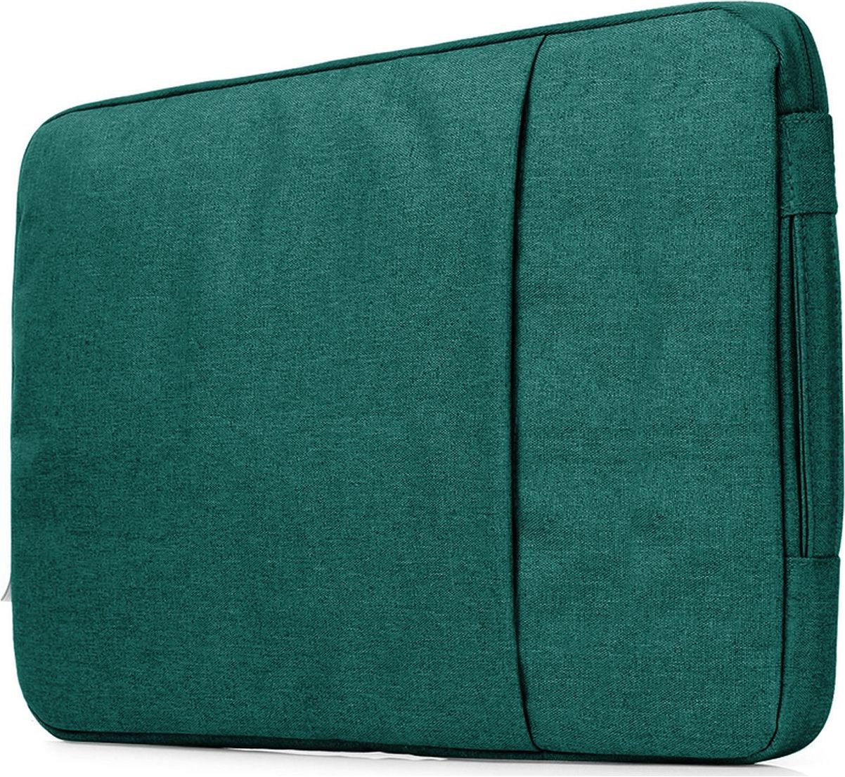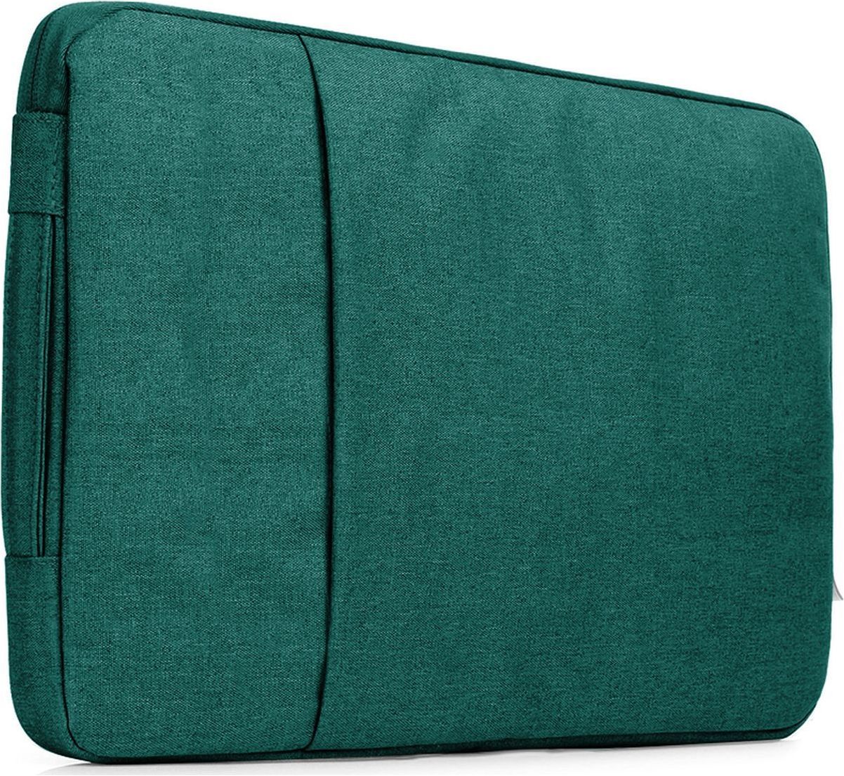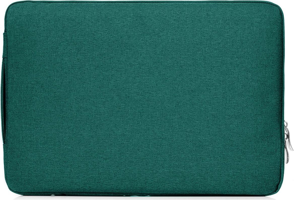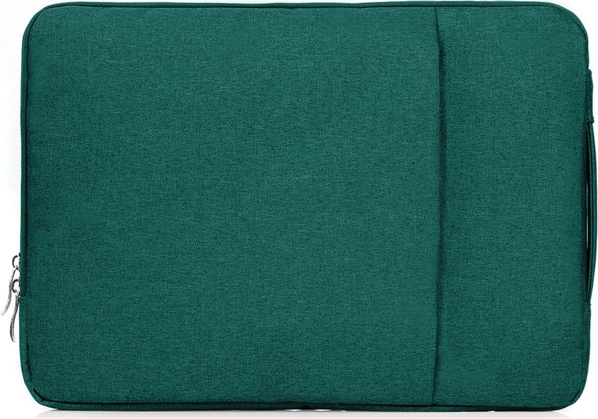 De laptop sleeve is gemaakt van polyester en uitgevoerd in de kleur groen. Met de ritssluiting sluit je de tas veilig af.