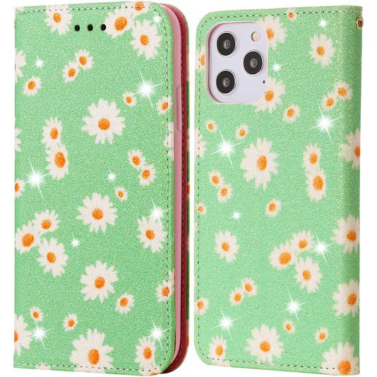 Mobigear Daisies iPhone 12 Pro Max Hoesje Bookcase Portemonnee - Groen