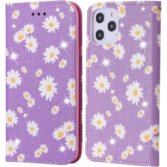 Mobigear Daisies iPhone 12 Pro Max Hoesje Bookcase Portemonnee - Paars