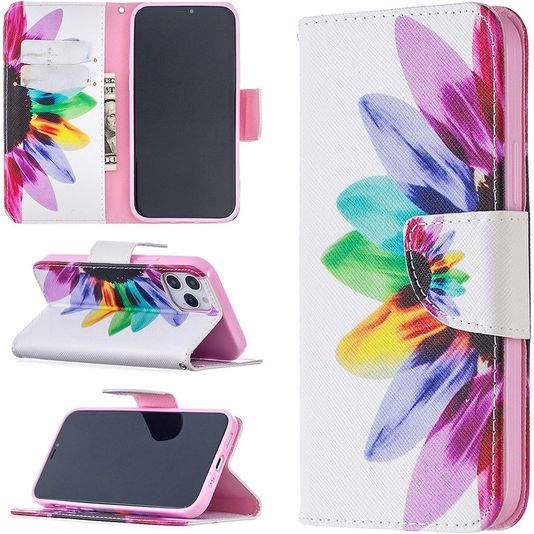 Mobigear Design iPhone 12 Pro Hoesje Bookcase Portemonnee - Zonnebloem