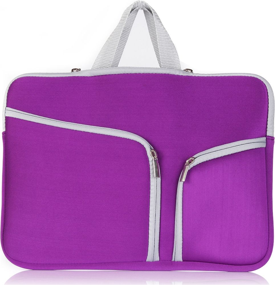 De laptop sleeve is gemaakt van schokdempend neopreen en uitgevoerd in de kleur paars. Met de ritssluiting sluit je de tas veilig af.