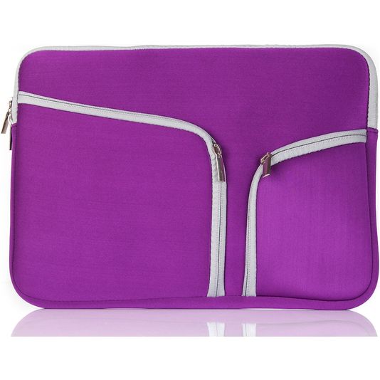 Bescherm je laptop onderweg met de Mobigear Double Zipper laptop sleeve. Gebruik de sleeve los of stop hem in je rugzag of andere tas voor extra bescherming. Het grote voordeel van een laptop sleeve is de compacte maat. Desondanks is je laptop met deze laptop sleeve uitstekend beschermd tegen schade bij dagelijks vervoer van je laptop. De laptop sleeve is gemaakt van schokdempend neopreen en uitgevoerd in de kleur paars. Met de ritssluiting sluit je de tas veilig af.