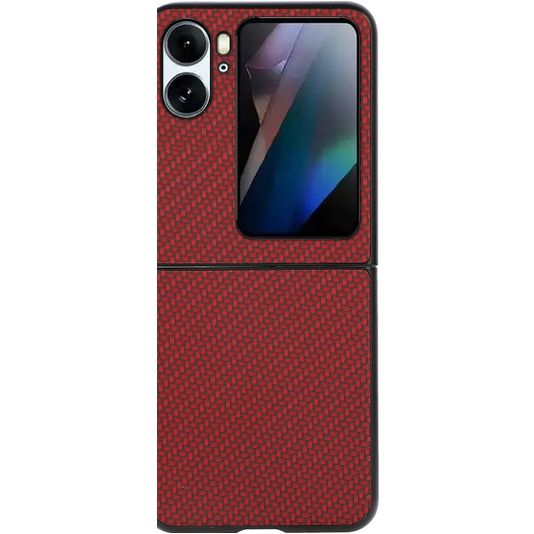 Bescherm je OPPO Find N2 Flip tegen beschadigingen met de Mobigear Carbon backcover gemaakt van stevig kunststof. Het hoesje is uitgevoerd in de kleur rood en bedekt de achter- en zijkant van je telefoon. De voorkant blijft met deze backcover vrij, zodat je scherm altijd direct toegankelijk is. Bij deze backcover is je scherm niet bedekt. Bestel een OPPO Find N2 Flip screenprotector mee voor volledige bescherming.