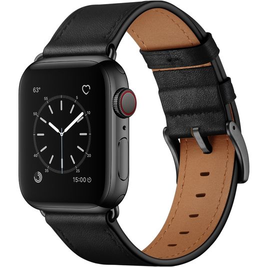 Mobigear Firenze Leren Apple Watch Bandje Gespsluiting - 49/46/45/44 mm - Zwart