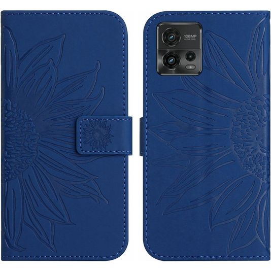 Wil je een Motorola Moto G72 hoesje met volledige bescherming rondom en een stijlvol en praktisch design? Dan is dit Mobigear Sunflower bookcase hoesje voor Motorola Moto G72 de perfecte keuze. Het booktype hoesje is gemaakt van hoogwaardig kunstleer en uitgevoerd in de kleur donkerblauw. Met een boek hoesje is je Motorola Moto G72 rondom goed beschermd, inclusief het kwetsbare scherm. De voorklep opent opzij als een boek en sluit stevig met een magnetische sluiting. Er is ruimte voor 3 pasjes zodat je altijd je bankpas of ID bij de hand hebt.