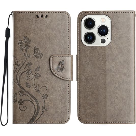 Mobigear Flowers iPhone 16 Pro Hoesje Bookcase Portemonnee - Grijs