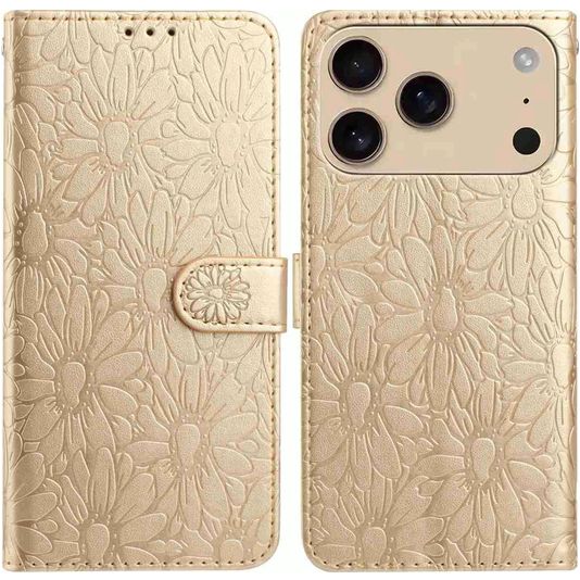 Mobigear Flowers iPhone 17 Pro Hoesje Bookcase Portemonnee - Goud