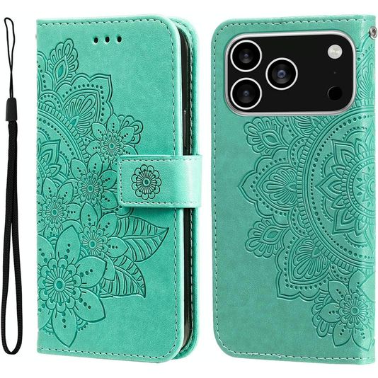 Mobigear Flowers iPhone 17 Pro Hoesje Bookcase Portemonnee - Groen