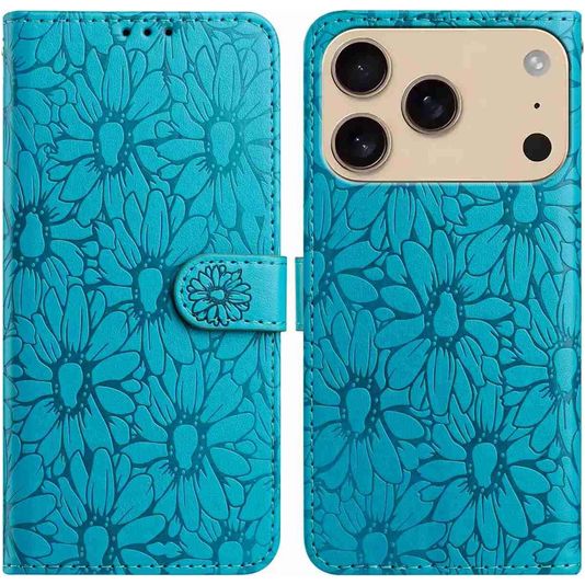 Mobigear Flowers iPhone 17 Pro Max Hoesje Bookcase Portemonnee - Blauw
