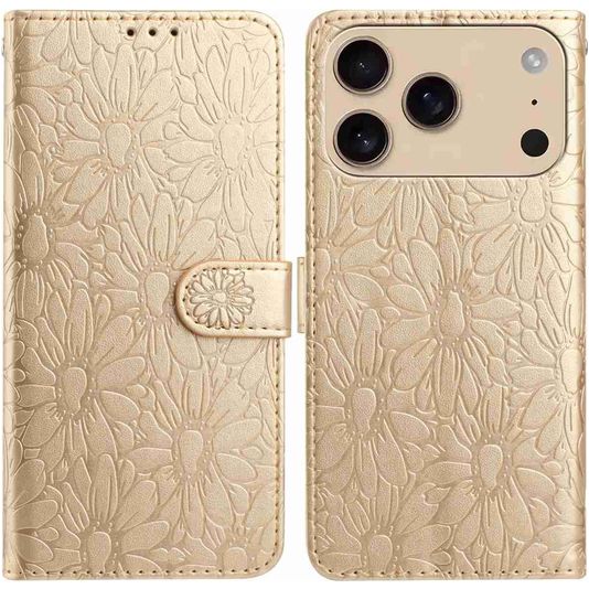 Mobigear Flowers iPhone 17 Pro Max Hoesje Bookcase Portemonnee - Goud