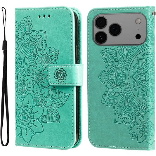 Mobigear Flowers iPhone 17 Pro Max Hoesje Bookcase Portemonnee - Groen
