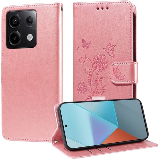 Mobigear Flowers POCO X6 Hoesje Bookcase Portemonnee - Roségoud