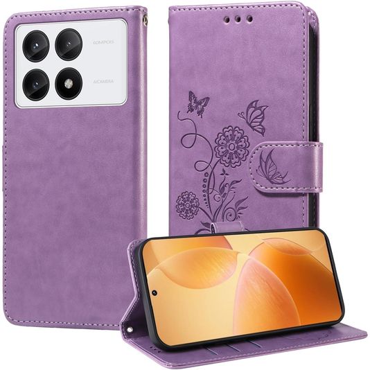 Mobigear Flowers POCO X6 Pro Hoesje Bookcase Portemonnee - Paars