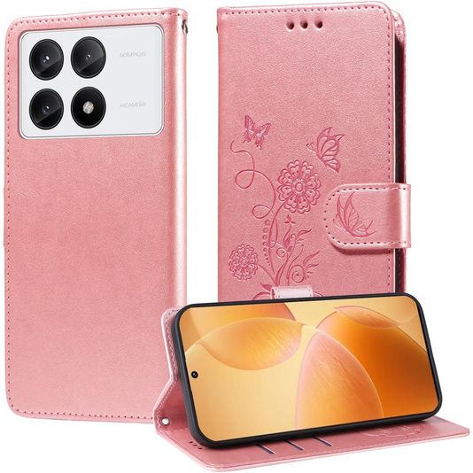 Mobigear Flowers POCO X6 Pro Hoesje Bookcase Portemonnee - Roségoud