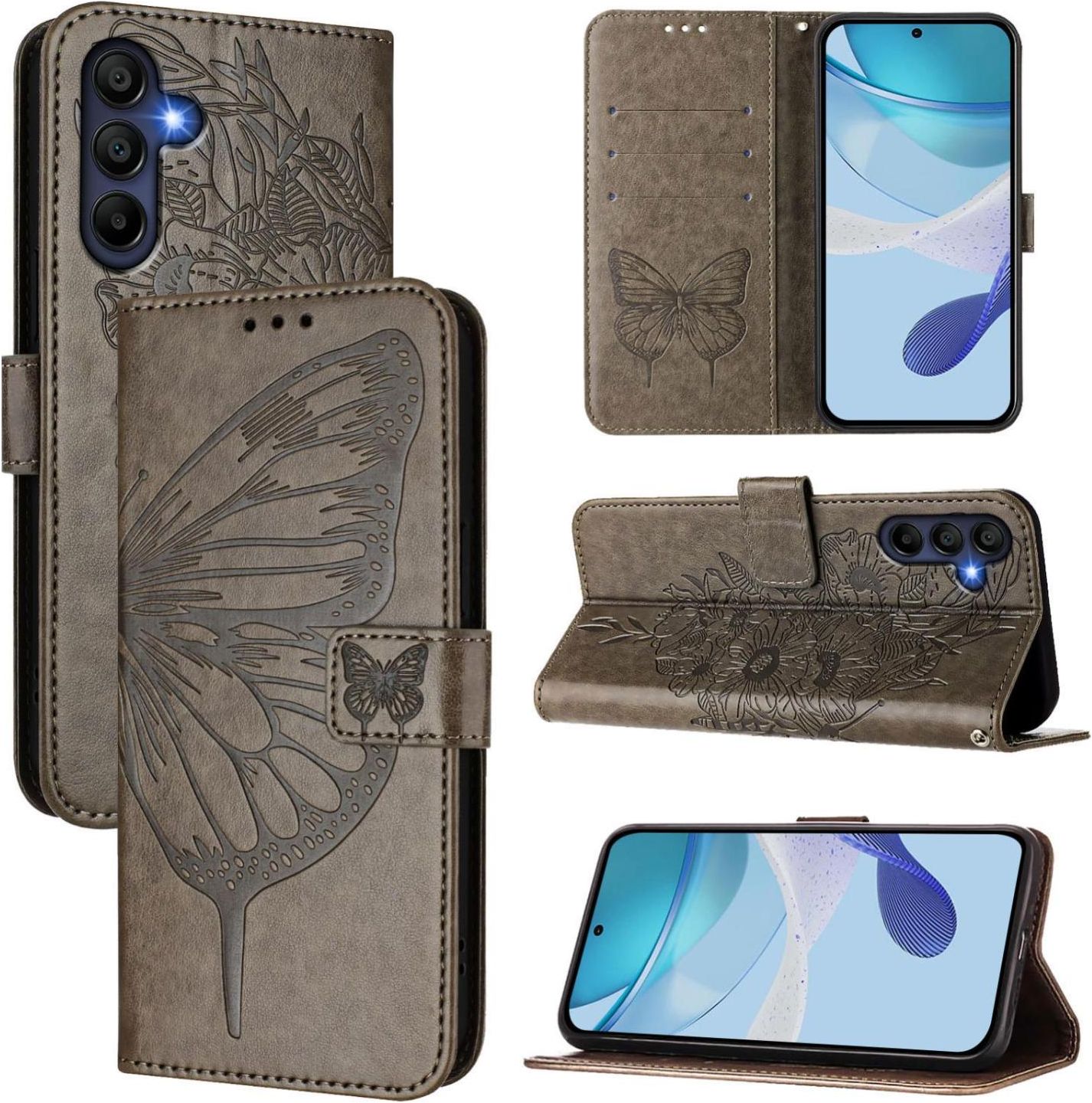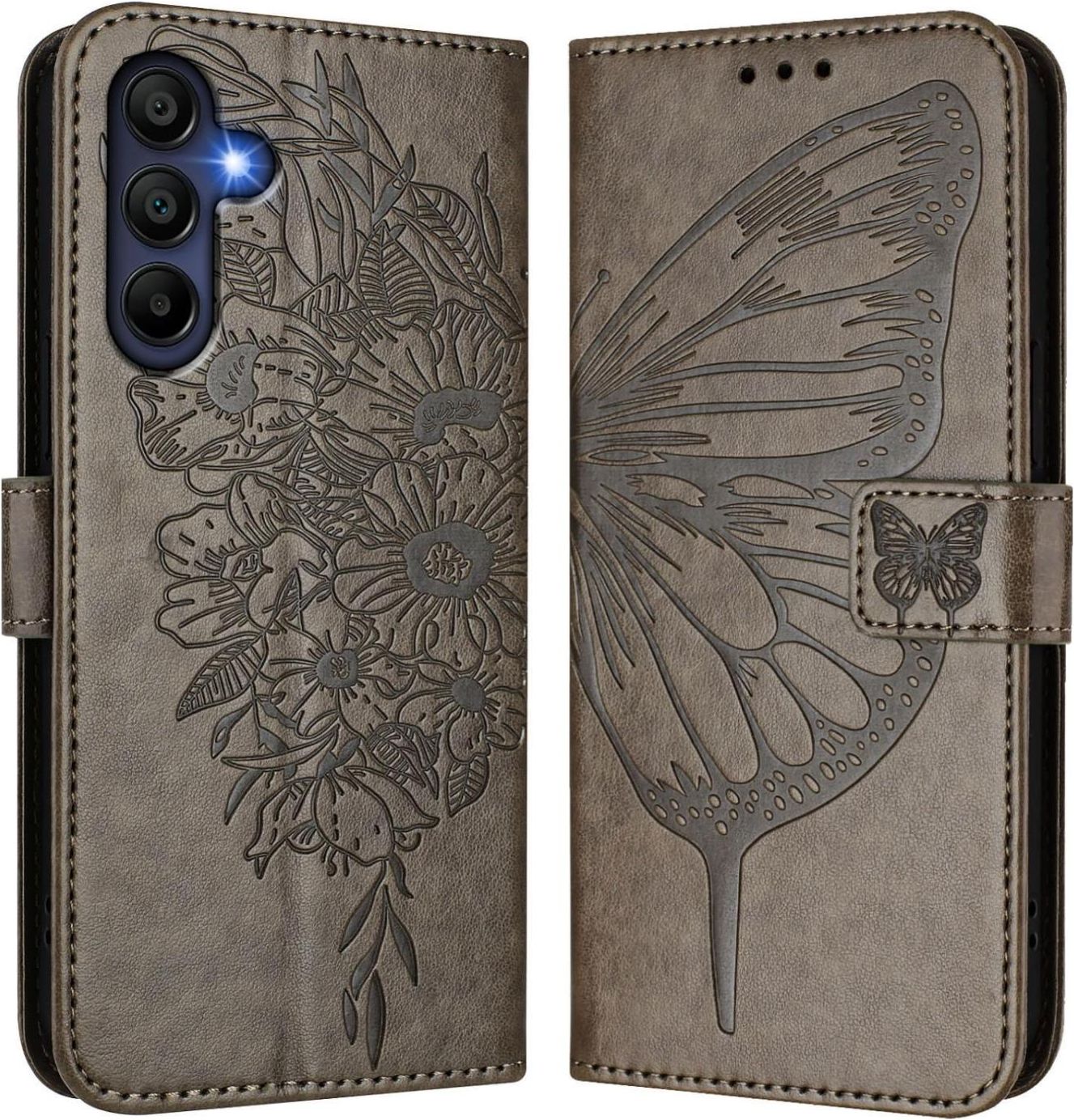 Mobigear Flowers Samsung Galaxy A17 Hoesje Bookcase Portemonnee - Grijs