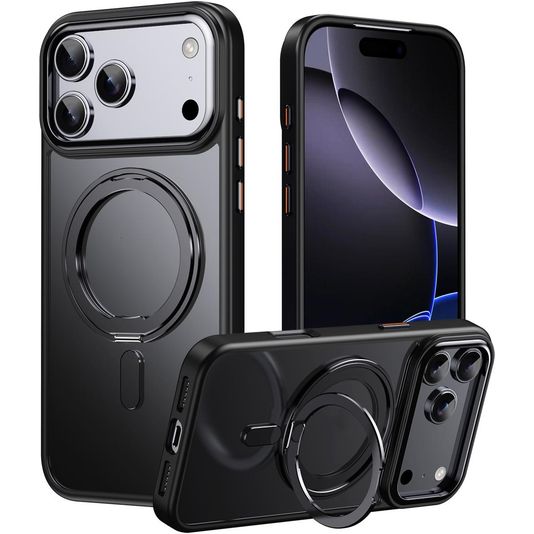Mobigear Frosted Mag iPhone 17 Pro MagSafe Hoesje Hardcase Backcover met Standaard - Zwart