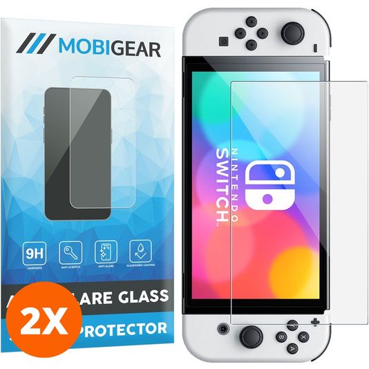 Mobigear Nintendo Switch OLED Glazen Screenprotector - Case Friendly - Zwart (2-Pack)
