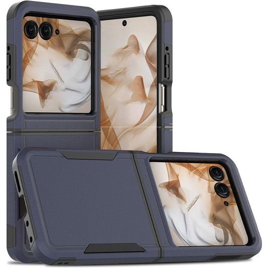 Bescherm je Motorola Razr 50 tegen beschadigingen met de Mobigear Heavy Armor backcover gemaakt van stevig kunststof. Het hoesje is uitgevoerd in de kleur donkerblauw en bedekt de achter- en zijkant van je telefoon. De voorkant blijft met deze backcover vrij, zodat je scherm altijd direct toegankelijk is.