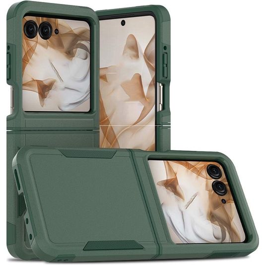Bescherm je Motorola Razr 50 tegen beschadigingen met de Mobigear Heavy Armor backcover gemaakt van stevig kunststof. Het hoesje is uitgevoerd in de kleur donkergroen en bedekt de achter- en zijkant van je telefoon. De voorkant blijft met deze backcover vrij, zodat je scherm altijd direct toegankelijk is.