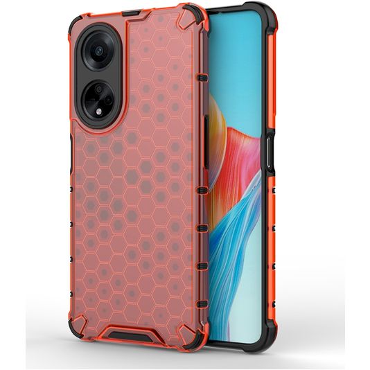 Bescherm je OPPO A98 tegen beschadigingen met de Mobigear Honeycomb backcover gemaakt van stevig kunststof. Het hoesje is uitgevoerd in de kleur rood en bedekt de achter- en zijkant van je telefoon. De voorkant blijft met deze backcover vrij, zodat je scherm altijd direct toegankelijk is. Bij deze backcover is je scherm niet bedekt. Bestel een OPPO A98 screenprotector mee voor volledige bescherming.