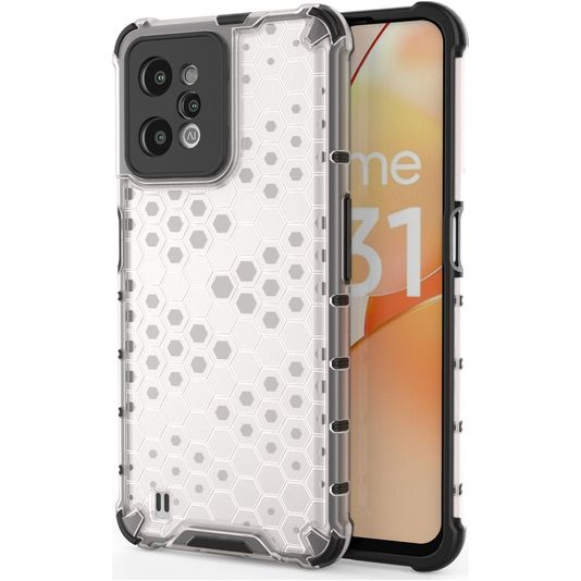 Geef je telefoon robuuste bescherming met de Mobigear Honeycomb backcover. Dit hoesje beschermd de achter- als zijkanten van je Realme C31. Het stevige ontwerp biedt een solide verdediging tegen schade bij vallen en ongelukken.