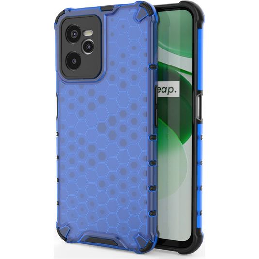 Geef je telefoon robuuste bescherming met de Mobigear Honeycomb backcover. Dit hoesje beschermd de achter- als zijkanten van je Realme C35. Het stevige ontwerp biedt een solide verdediging tegen schade bij vallen en ongelukken.