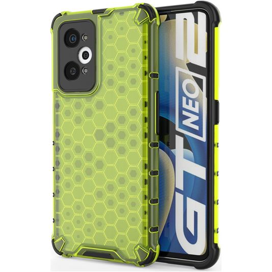 Bescherm je Realme GT Neo2 tegen beschadigingen met de Mobigear Honeycomb backcover gemaakt van stevig kunststof. Het hoesje is uitgevoerd in de kleur groen en bedekt de achter- en zijkant van je telefoon. De voorkant blijft met deze backcover vrij, zodat je scherm altijd direct toegankelijk is. Bij deze backcover is je scherm niet bedekt. Bestel een Realme GT Neo2 screenprotector mee voor volledige bescherming.