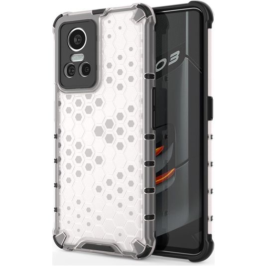 Bescherm je Realme GT Neo 3 tegen beschadigingen met de Mobigear Honeycomb backcover gemaakt van stevig kunststof. Het hoesje is uitgevoerd in de kleur wit en bedekt de achter- en zijkant van je telefoon. De voorkant blijft met deze backcover vrij, zodat je scherm altijd direct toegankelijk is. Bij deze backcover is je scherm niet bedekt. Bestel een Realme GT Neo 3 screenprotector mee voor volledige bescherming.