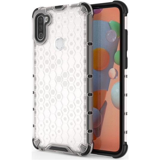 Dit transparante Samsung Galaxy A11 Mobigear Honeycomb hoesje is gemaakt van stevig kunststof. Met het doorzichtige Samsung Galaxy A11 hoesje blijft het design van je toestel mooi zichtbaar. Het Mobigear Honeycomb hoesje beschermt de achterkant en randen van jouw Samsung Galaxy A11. Het scherm blijft met deze back cover direct toegankelijk.