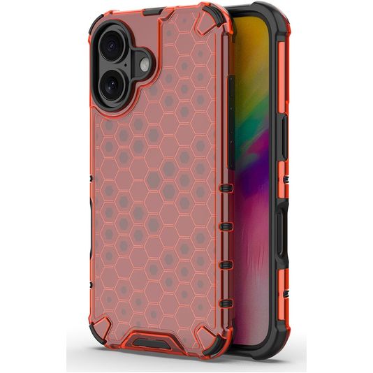 Bescherm je Apple iPhone 16 Plus tegen beschadigingen met de Mobigear Honeycomb backcover gemaakt van stevig kunststof. Het hoesje is uitgevoerd in de kleur rood en bedekt de achter- en zijkant van je telefoon. De voorkant blijft met deze backcover vrij, zodat je scherm altijd direct toegankelijk is.